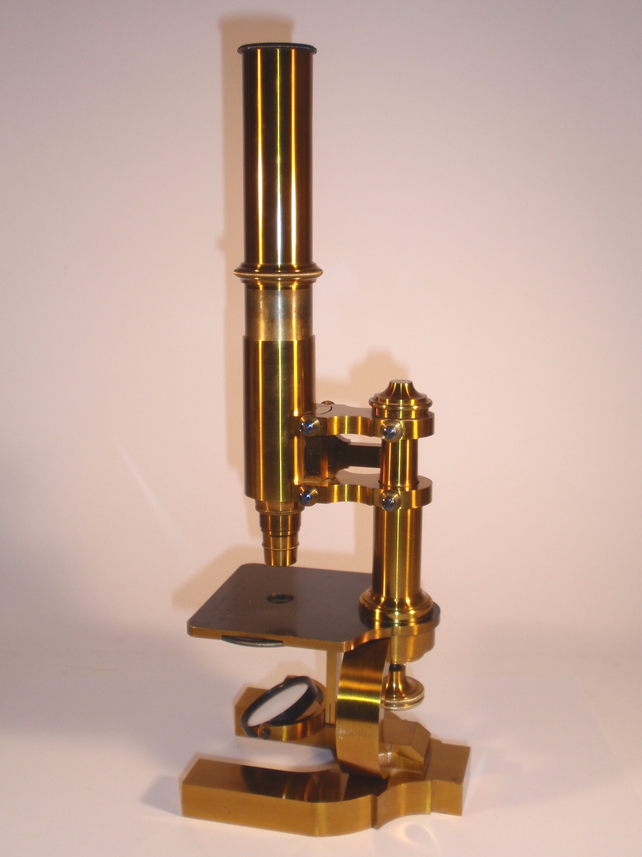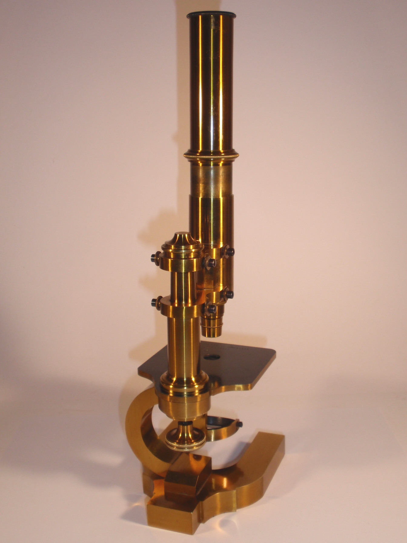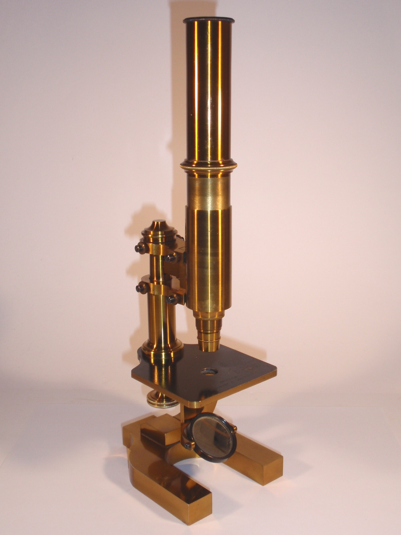voll Messing, original zaponiert, ca. 1865 - 1867; Höhe 32 cm, 3 Okulare (Nr. 1, 2 und 3), 3 Objektive (Nr. 5, 7 und 8) - alles komplett und original! Grobeinstellung per Tubus, Feineinstellung hinten unter der Säule, Lochblendenscheibe unter dem Tisch; Signatur auf dem Tisch "Engelbert & Hensoldt Wetzlar"; unter dem Tubusträger die Nummer "692"; Mikroskop und alle Teile sind vollkommen original und sehr gut erhalten! Das Mikroskop scheint kaum benutzt worden zu sein. Mechanisch und optisch sehr gut, Erhaltung nicht zu übertreffen! Sehr schöner Kasten.