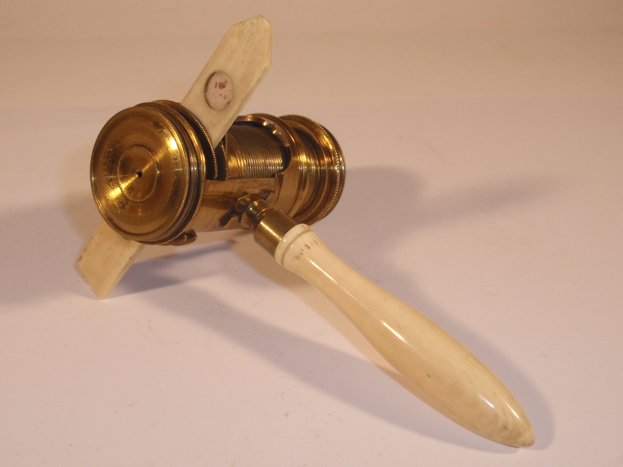 M 1191 – Frühes englisches Screw-Barrel-Mikroskop mit Elfenbeingriff