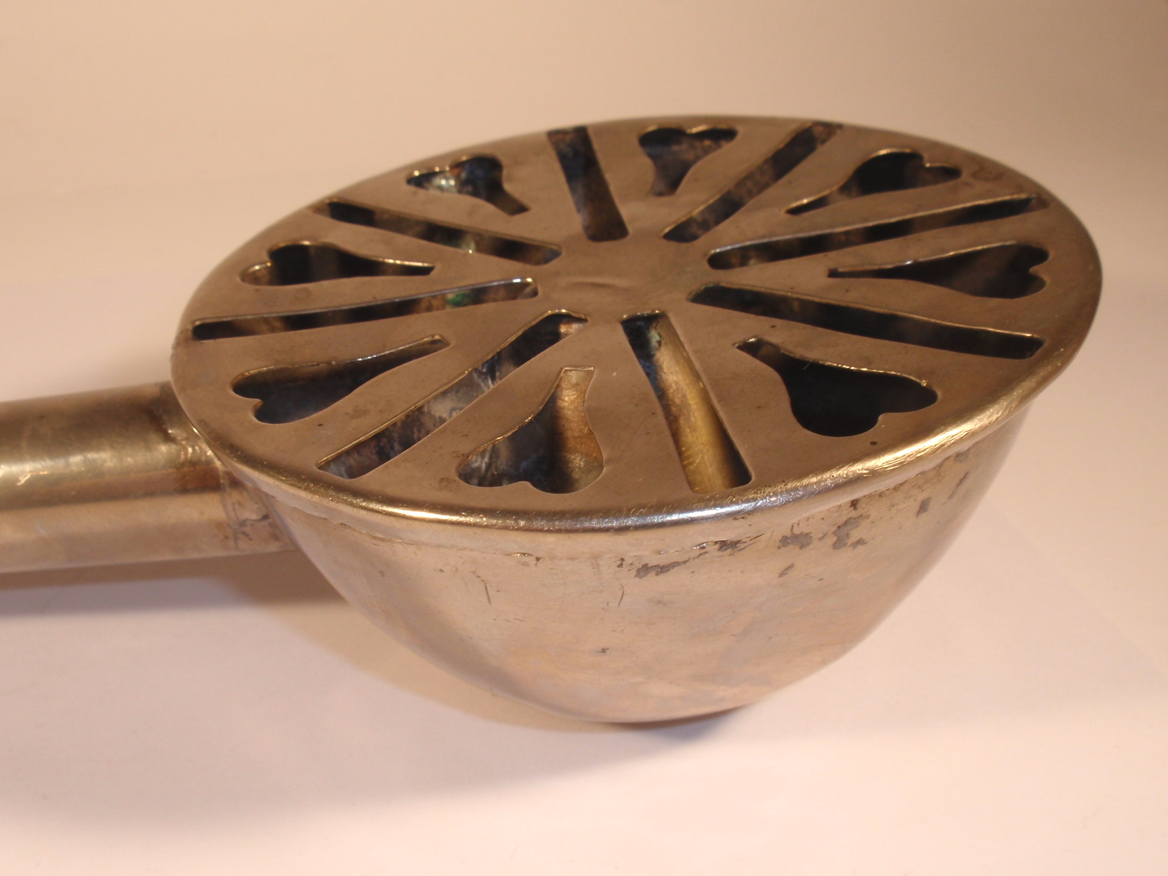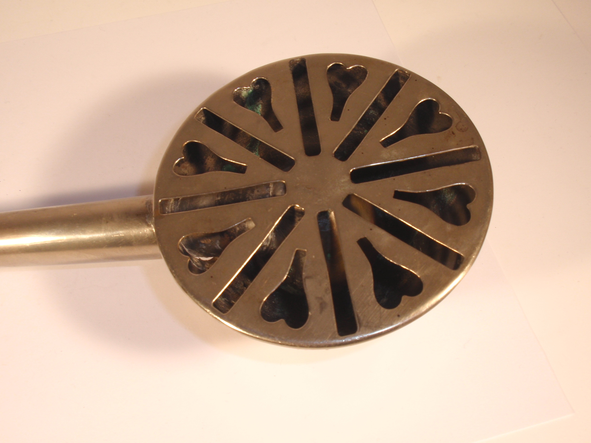 MED654 MED 654 - Altes Hörrohr ca. 1880 - 1900, (versilbertes?) Stahl-Blech, einmal ausziehbar, zusammenschiebbar, Länge ausgezogen 33 cm; Durchmesser vorne 9,5 cm; mit original Ohrstück; guter Zustand. In dieser Art selten. verkauft / sold