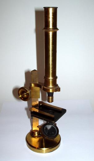 Seltenes Mikroskop von Wenzel Prokesch, Wien, voll Messing, original zaponiert, ca. 1830 - 1840, Höhe 32 cm, 1 dreiteiliges Objektiv, 2 Okulare, Grob- und Feineinstellung durch einen Trieb; Dreikantstativsäule - wie zu der Zeit üblich - aus Stahl; Signatur in geschwungener Schreibschrift auf dem Fuß "Prokesch Wien"; mechanisch und optisch gut, Erhaltung gut, kein Kasten. Dieses Mikroskop aus der Werkstatt von Wenzel Prokesch gleicht den Mikroskopen von Plössl; Prokesch fertigte zur gleichen Zeit wie Simon Plössl wissenschaftliche Geräte; er baute aber nur wenige Mikroskope.