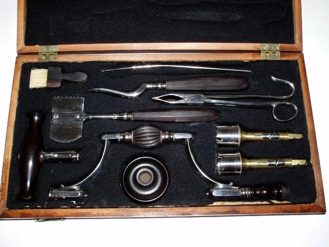 Med 491: Sehr gutes und komplettes Trepanationsbesteck