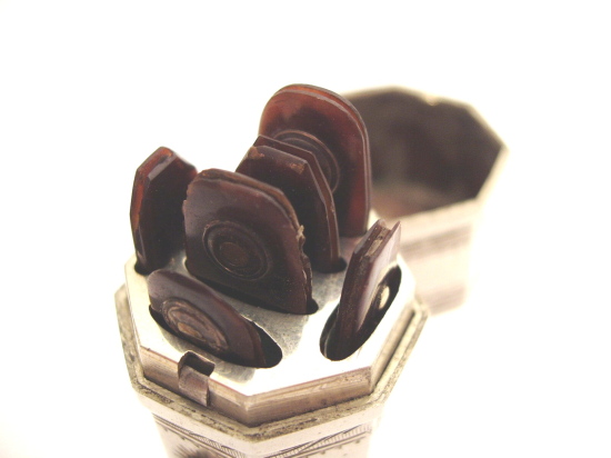 Med 537: Sehr altes medizinisches Etui aus Silber mit 6 Lanzetten