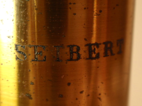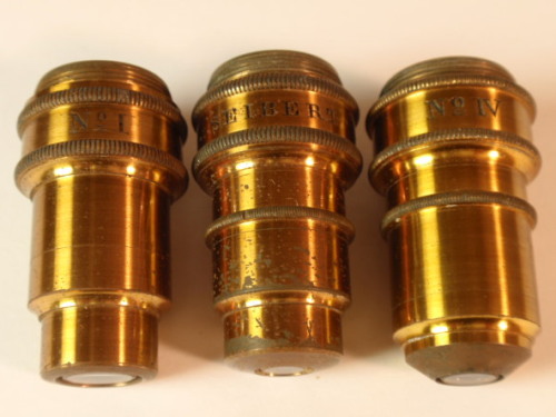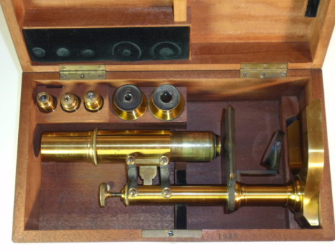 voll Messing, original zaponiert, ca. 1880, Höhe 31 cm; Komplettausstattung: 3 signierte und nummerierte Objektive (I, III und IV); 2 Okulare (I und III), Grobeinstellung per Tubus, Feineinstellung, Lochblendenscheibe unter dem Tisch, Signatur vorne auf dem Tubus "Seibert"; die originale - mit der Nummer "1.939" versehene - Vergrößerungstabelle zeigt, dass das Mikroskop ehemals mit der hier vorliegenden optischen Ausstattung verkauft wurde; mechanisch und optisch gut bis sehr gut, Erhaltung gut bis sehr gut, schöner Kasten mit der eingestanzten Nummer "1.939".