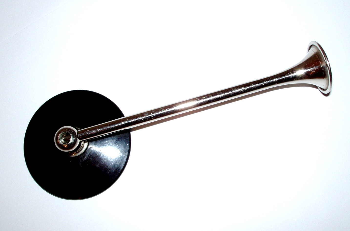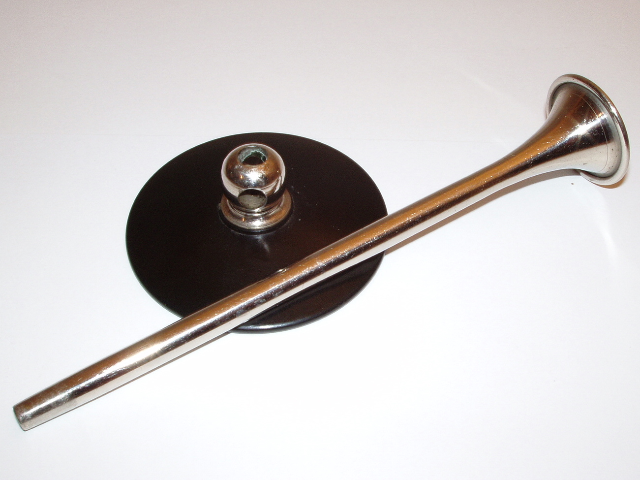 Altes und seltenes zweiteiliges Stethoskop aus Metall und Bakelit, zusammensteckbar, ca. 1900, Länge 17 cm; größter Durchmesser 6 cm; für den Transport zusammensteckbar, sehr guter Zustand; in dieser Ausführung selten! Excellent metal and bakelit monaural stethoscope, ca. 1900, length 6 3/4" (17 cm); made of 2 pieces; the whole instrument is in a very good condition.
